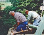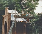 Auf der Jahreshauptversammlung 1997 faßte die Bruderschaft den Beschluß, anläßlich des Jubiläums ein Heiligenhäuschen zu errichten. Die Stadt Rheinberg stellte hierzu auf unseren Antrag das Grundstück zur Verfügung. Schützenbruder Jakob Schattmann übernahm die architektonische Leitung. Der erste Spatenstich durch Brudermeister Otto Baumann erfolgte am 26. März 1998, das Richtfest am 01. August 1998 gefeiert. Das Heiligenhäuschen wurde von den Schützenbrüdern komplett in Eigenleistung fertiggestellt.