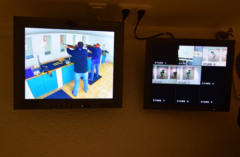 Durch eine Videoübertragung kann man im Aufenthaltsraum das Geschehen auf der Schießanlage beobachten