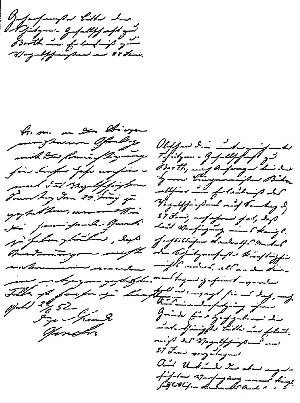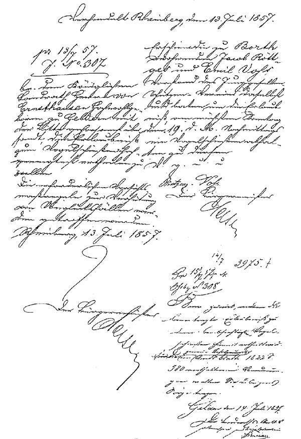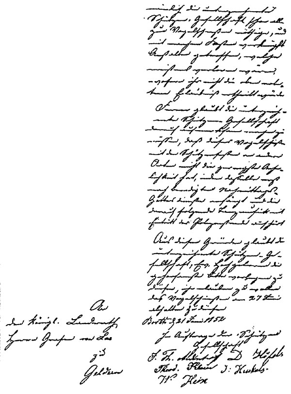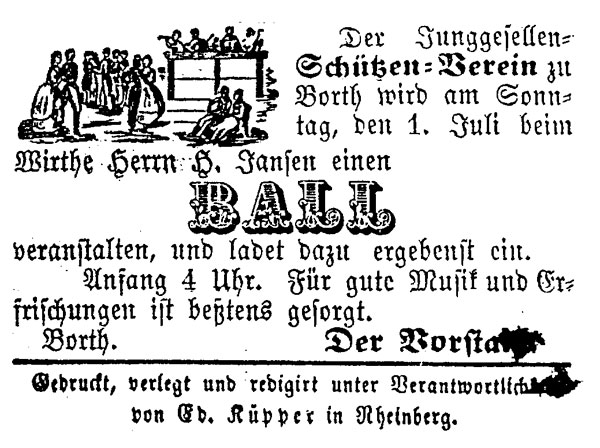 Erstes schriftliches Zeugnis ist eine Bittschrift vom 21. Juni 1852, die im Rheinberger Stadtarchiv gefunden wurde.